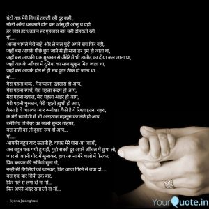 घंटो तक मेरी निगाहें तकती रही दूर कही , गीली आँखें थरथराते होठ बस आंसू ही आंसू थे वही, हर सांस हर धड़कन हर एहसास